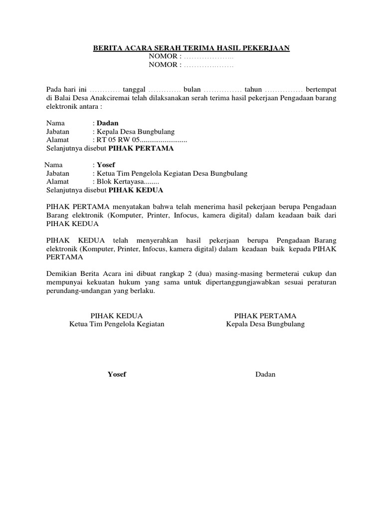 Berita Acara Serah Terima Hasil Pekerjaan Pdf